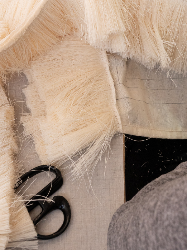 Chaque pièce est le fruit d’un processus d’« essais et d’erreurs » où artisans et designers collaborent pour explorer toutes les possibilités offertes par la texture. Enfin, l’assemblage est réalisé par une équipe de 50 professionnels, veillant à ce que chaque nœud et chaque point rende hommage à l’origine du matériau.
