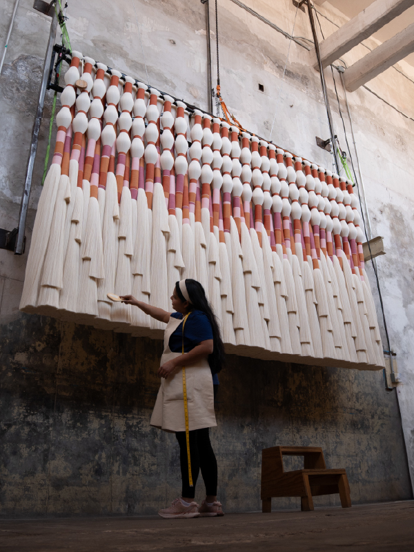 Tout a commencé en 2014 dans l’ancienne usine textile « El Hércules ». Ana Holschneider et Socorro Gasca ont su voir la beauté dans les fils de coton et les déchets textiles, que d’autres considéraient comme de simples restes. Peu après, Ariadna García a rejoint le projet ; ensemble, elles ont vu une formidable opportunité de valoriser le patrimoine de la communauté en réintégrant les habitants d’Hércules dans la production textile. Pour nous, Caralarga représente un héritage créatif construit au sein de la communauté ; c’est un hommage à la polyvalence de la nature et au pouvoir du travail artisanal de transformer les espaces et les vies.